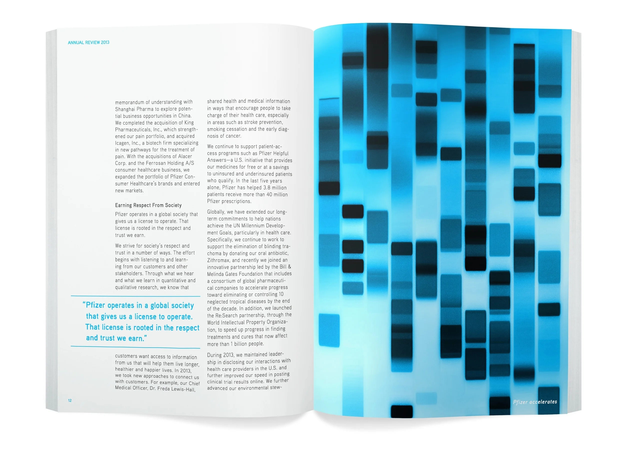 Every publicly traded company is responsible for reporting their yearly earnings. While that annual report is driven by financial data, it can also reflect the soul of a brand. Pfizer is a pharmaceutical corporation that strives to provide the best quality care for patients around the globe. By maintaining high standards of excellence, research continues to grow and expand to emerging markets.